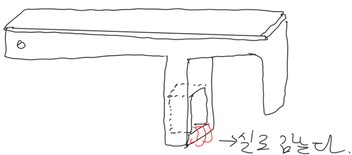 원인은 알았지만 이 경우는 해결 방법이 만만치 않다. 무게추 검은색 부위에 구리스를 몽땅 발라 보았지만 큰 도움은 되지 않았다. 근본적인 해결은 연결부 홈의 유격을 줄여주는 것인데, 유격을 너무 줄이면 연결부가 빡빡해져서 건반을 누를 때 키감이 안좋아질(건반이 잘 안눌러지고 잘 안올라오는) 수 있기 때문에 적당히 줄이는 것이 중요하다. 종이를 끼울까 테이프를 붙일까 고민하다가 생각해 낸 방법은 그림 4처럼 홈의 아래쪽을 실로 감는 것이다.